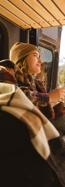 Your comfort drives our van designs at every stage. From kitchenettes with running water to essential facilities like efficient a/c + heating, comfortable bedding, and abundant storage space, our vans are tailored for your convenience. Enjoy exclusive features such as StarLink connectivity, two beds, showers, toilets and more.